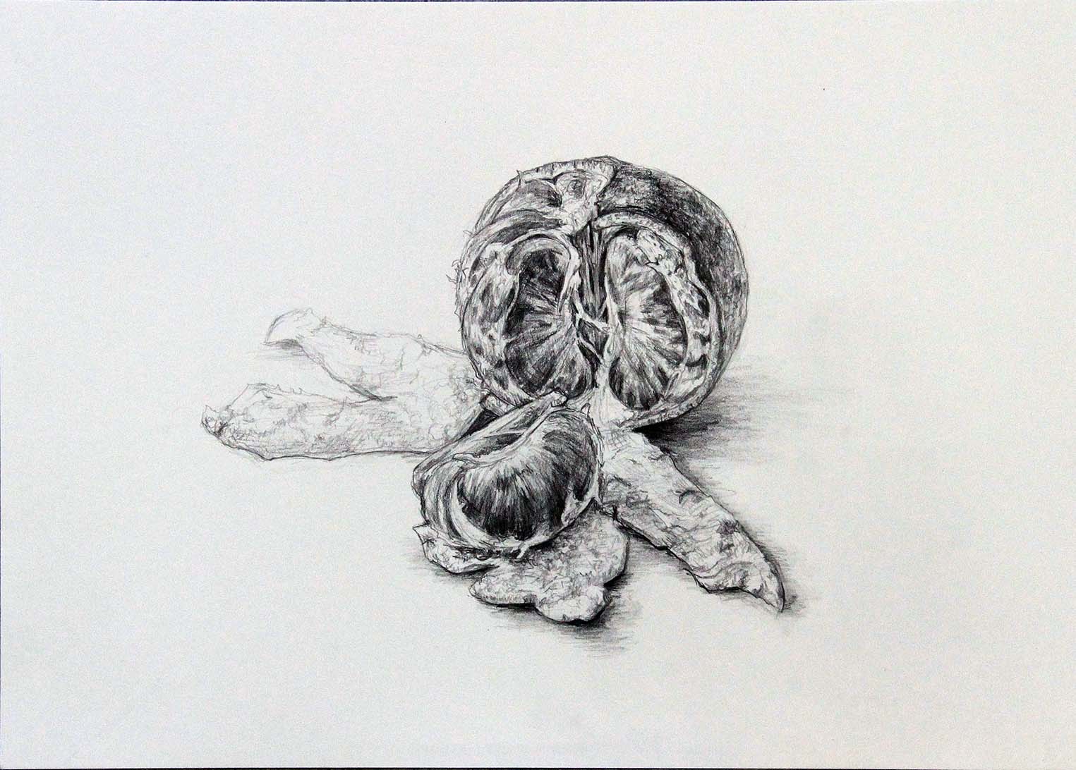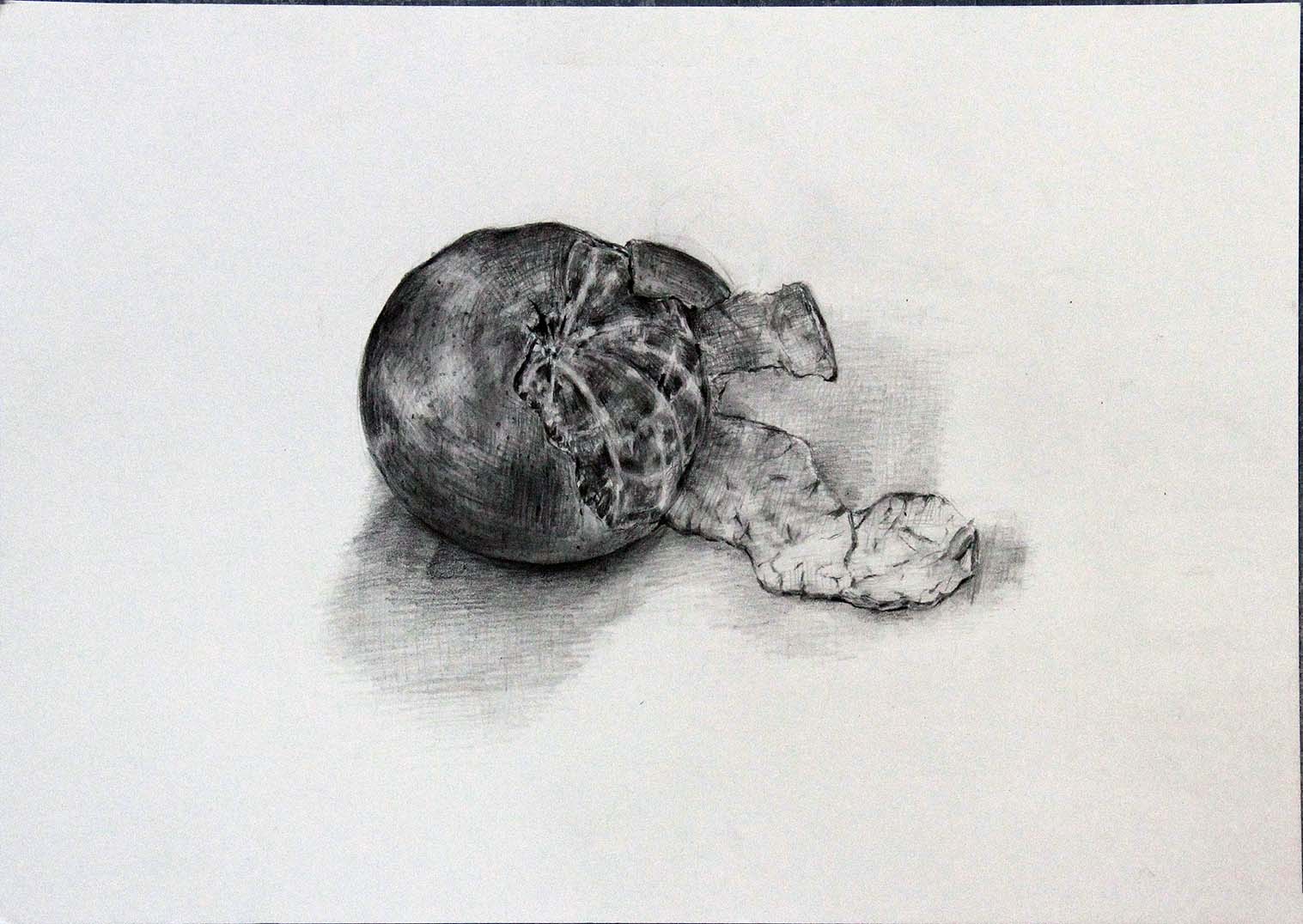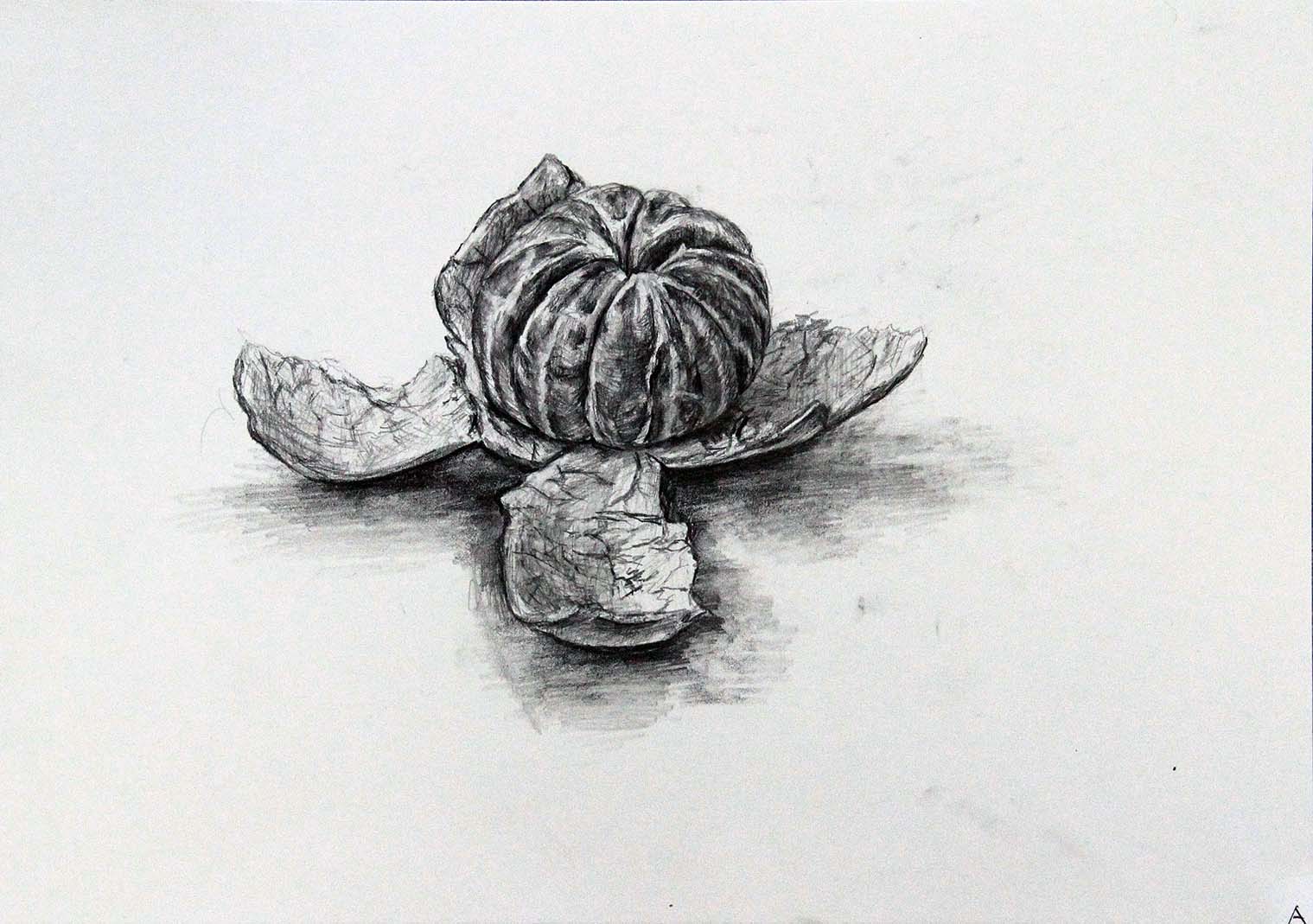 みかんの細かい繊維や、皮の表現など、2時間半という時間に苦戦しながらも一生懸命描いていました。