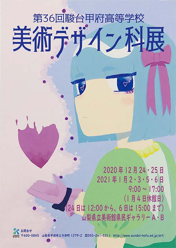 ホーム ニュース - 美術デザイン科展が始まりました 美術デザイン科展が始まりました 2020年12月24日 今日から美術デザイン科展が始まりました。 年内は12月24・25日、年明けは2・3・5・6日に開催しています。 時間は9時から17時です。 オンライン授業作品や公募展作品、様々な授業作品など800点程を展示しています。 また、コンクール展示も行っておりますので、ぜひ足を運んでいただき投票をよろしくお願いします。 学校紹介 進学実績 交通アクセス PageTOP