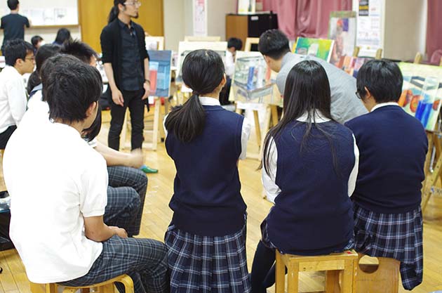 山梨県高等学校文化連盟美術工芸専門部会では、毎年6月と2月に県下の高校生を対象に、美術実技講習会を開催しています。この講習会は初心者から受験生まで幅広い生徒の指導に対応するため、美術予備校の先生方にも来ていただき、1日半にわたって行われます。
