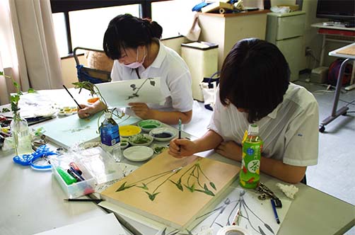 ホーム ニュース - 日本画講習を行いました。 日本画講習を行いました。 2016年08月20日 8月18日~20日の3日間で日本画講習会(材料体験)を行いました。 参加者は13名 1年生は植物をトレースして、2・3年生は静物を描きました。 水干絵具を中心に、岩絵の具も少し使って仕上げます。 日頃の授業では、一斉に日本画に取り組むことは難しいので、毎年夏期休暇中を利用して実施しています。 出来上がった作品 学校紹介 進学実績 交通アクセス PageTOP