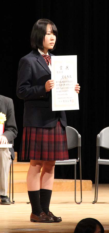 11月10日、コラニー文化ホールで、第37回山梨県高等学校芸術文化祭の総合開会式が行われました。その中で、ポスター部門の表彰式が行われ、3年望月麻衣さんが優秀賞を受賞しました。また、第57回山梨県高等学校美術連盟展が11月26日(土)~12月2日(金)まで県立美術館県民ギャラリーで行われます。奨励賞を受賞した2年青柳こころさんの作品がポスターになってます。そこで原画が展示されますので、ぜひ足をお運びください。