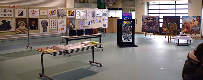 美デ科の様子や展示作品について説明