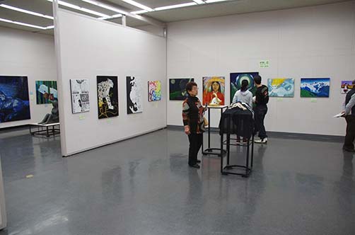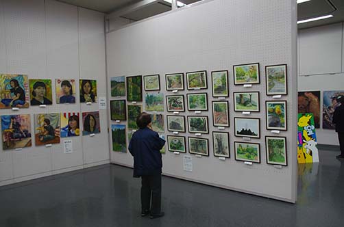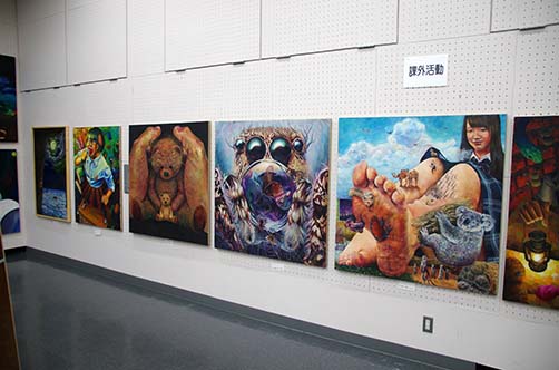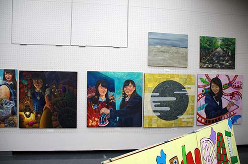 自由制作のコンクールも行っており、来場者に投票して頂き賞を決めることになっています。F100号など大きな作品に取り組んでいる生徒もいます。