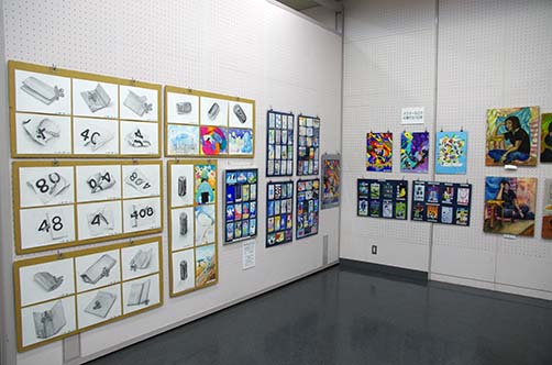 展示は、授業作品を中心に、今年1年間に公募等に出品した作品や課外活動で制作した作品の他に、