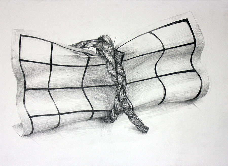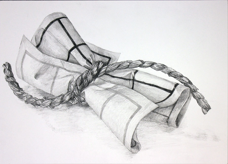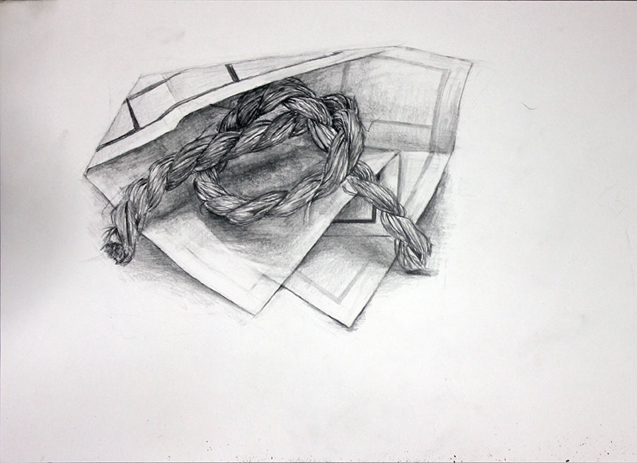 5月24日(水)に1学期中間デッサンコンクールを行いました。課題は全学年共通で、縄と四角いマスが印刷された用紙を描きました。構図やモチーフの組み合わせ方も各自で設定します。