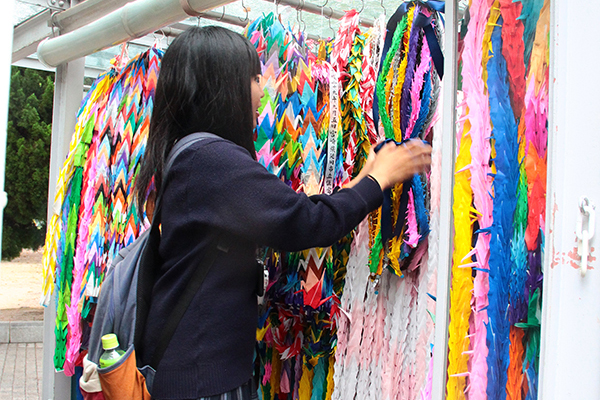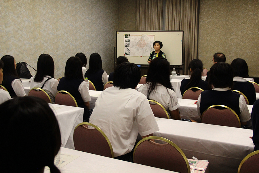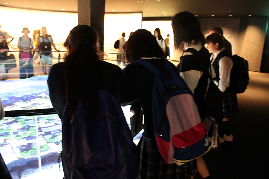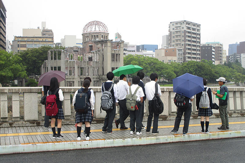 1日目は広島です。バスと新幹線を乗り継ぎ、広島駅に到着。そこから路面電車に乗りひろしま美術館に向かいました。平和記念公園ではガイドさんに公園内を解説してもらいながら案内してもらいました。最後に記念資料館を見学しました。夕食後は原爆を経験された畠山さんから平和講話をいただきました。