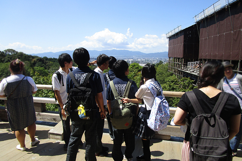 4日目は全員で三十三間堂、京都近代美術館、清水寺を見学しました。三十三間堂では静かに仏像を鑑賞しました。京都近代美術館では絹谷幸二展が開催されており、色彩の豊かさと大胆な表現に圧倒されました。清水寺は舞台が工事中でしたが、天気が良く、景色も綺麗に見えました。