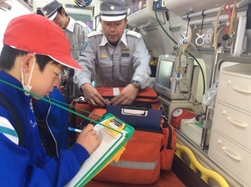 また、救急車や消防車の車内やどんな機能が備わっているか実際に乗車して見る事もできました。