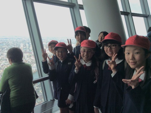 スカイツリーの高さ350mの展望台から眺める風景に子どもたちは地球の丸さを感じていました。