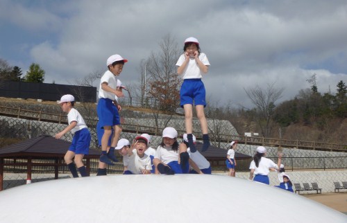 遊戯施設では、冬の寒さにも負けず、跳んだり、はねたりと