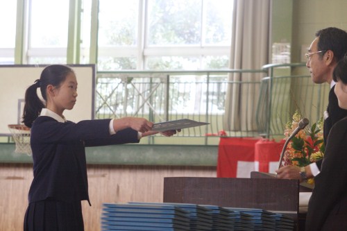 ホーム ニュース - 第9回 卒業式 第9回 卒業式 2016年03月22日 3月19日(土)に第九回卒業式が行われました。 児童一人一人に校長先生から祝福の言葉と共に卒業証書が手渡され、その重みを感じながら緊張した卒業生の姿が印象的でした。 「旅立ちの日に」の合唱と、仲間の大切さと感謝の気持ちを綴った呼びかけに、保護者、ご来賓、教職員、在校生も大きな感動に包まれました。 九期生の皆さん、ご卒業おめでとうございます。中学校での更なる活躍を楽しみにしています。 学校紹介 小中高12年一貫教育 学びの特色 小学校校舎紹介 卒業生の活躍(高校普通科HPへ) 合格実績(高校普通科HPへ) PageTOP