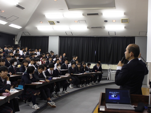 11月17日(木)午後、中学3年生対象に、「未来の科学者訪問セミナー」が実施されました。このセミナーは、県内の学校に科学の研究者を派遣する山梨県県民生活部が主催となって行われる企画で、本校で講師を務めてくださったのは、山梨大学の生命環境学部生命工学科の若山照彦教授でした。この、またとない機会を本校では中学3年生の第2回生徒対象進路講演会の位置づけで実施しました。