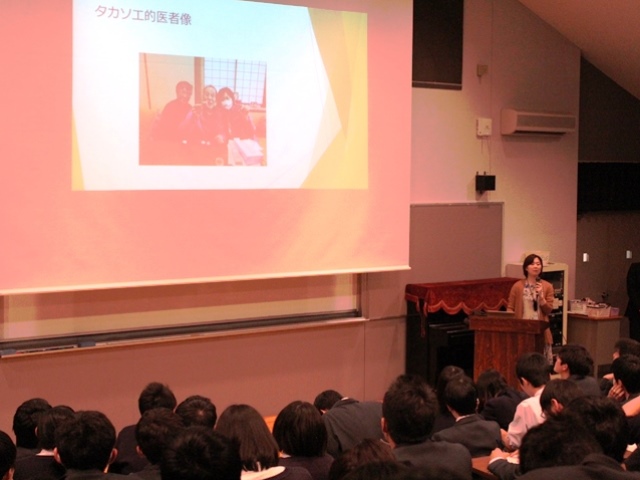 また、先生がなぜ地域医療を志したのか、今後の日本の少子高齢社会の中で私たちが心豊かに生きるためにどう考えていけば良いのかなど示唆に富んだお話の内容は、医学を目指す生徒だけでなく、会場にいた全3年生に届けられたメッセージだと思います。