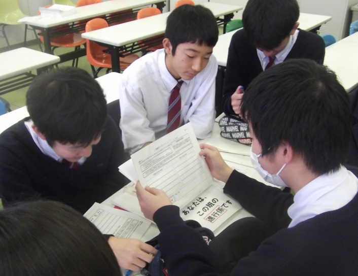 扱われた仮想の事件は、無実を主張する被告人が有罪のようにも、無罪のようにも思えるというもので、模擬裁判後に各班に分かれて有罪か無罪かを評議し、発表をしました。