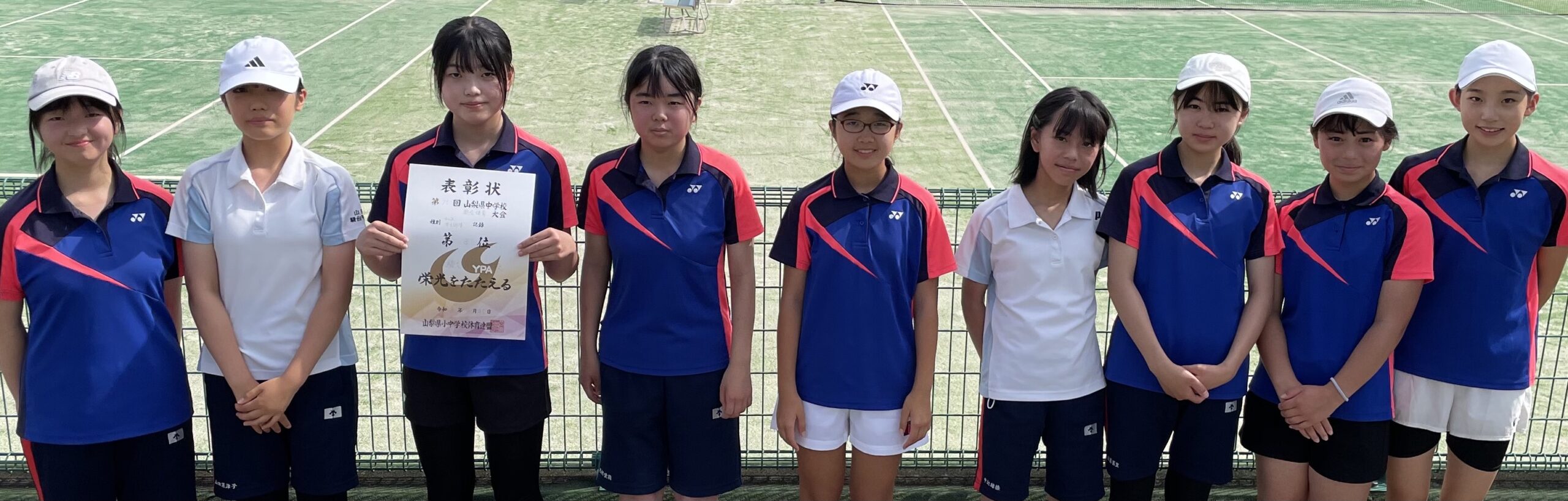 県総体は、7月21日(日)にダブルス、25日(木)に団体戦、26日(金)にシングルスの試合がありました。この大会が3年生と臨む最後の試合でした。酷暑の中でしたが、男女とも全力を出し切れたと思います。団体戦で女子は3位になり、表彰されることができました。3年生の皆さん、お疲れ様でした。これまで支えてくださった保護者の皆様、応援ありがとうございました。