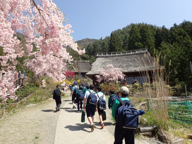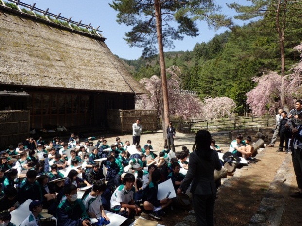 2年生は富士河口湖町にある西湖いやしの里根場でスケッチ大会を開催しました。雄大な富士山と昔懐かしい茅葺き屋根の家々に囲まれながら、桜の花びらが舞う美しい風景を満喫してきました。生徒たちは、のどかな春の空気を感じながら、真剣にキャンバスに向かいました。できあがった作品は校内で審査し優秀作品を「UTY教育美術展」に出展する予定です。