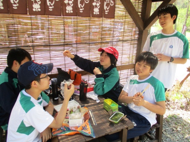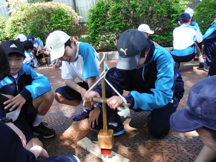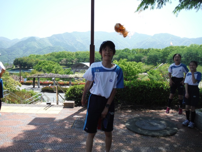桜満開の中で行われた入学式から、早いもので3週間が経過しました。すっかり中学校生活にも慣れてきたところで、中学生になって初めての校外学習として中道にある風土記の丘公園に行ってきました。片道4キロの道のりを歩いての研修ということで、不安を抱きながらも当日を楽しみにしていた生徒も多かったと思います。研修当日は天候にも恵まれ、新緑がまぶしい曽根丘陵を満喫しながら、火起し体験や古墳見学、山梨県立考古博物館見学など、教室では得られない体験をしてきました。日ざしが強く、気温も夏日を記録する中で春の終わりを感じる荒川の土手沿い、歩き抜いたその姿に早くも成長を感じました。