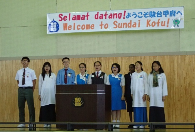 6月3日(金)駿中と姉妹校である、マレーシア・スバンジャヤ市第8国民中等教育学校(SMK USJ8)の来校団(校長先生はじめ教員4名、生徒9名)が駿中での学校生活を初めて体験しました。歓迎セレモニーにはじまり、本校生徒と共に美術や体育などの授業体験、来校生徒を囲んでの昼食、駿中祭の準備見学、小学校、高等学校美術デザイン科見学と、盛りだくさんの内容でした。とにかく陽気なマレーシアの先生・生徒たち、オープニングセレモニーでは校歌を披露してくれました。生徒同士は英語を駆使してコミュニケーションをとり、すぐに仲良くなったようです。本校生徒も来校団の生徒も、異文化に触れることから多くのことをきっと学ぶことでしょう。