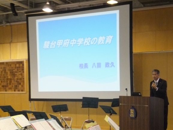 5月28日(土)、「オープンキャンパス」が実施されました。当日は、多数の小学生及びその保護者のみなさまにご来校いただき、盛況のうち終了することができました。ご来校、誠にありがとうございました。吹奏楽部による歓迎の演奏や学校紹介のDVDの上映、校長による「駿台甲府中学校の教育」の説明の後、児童・保護者のみなさまには本校独自の土曜日の取り組みであるCS(チャレンジングサタデー)を自由に見学していただきました。