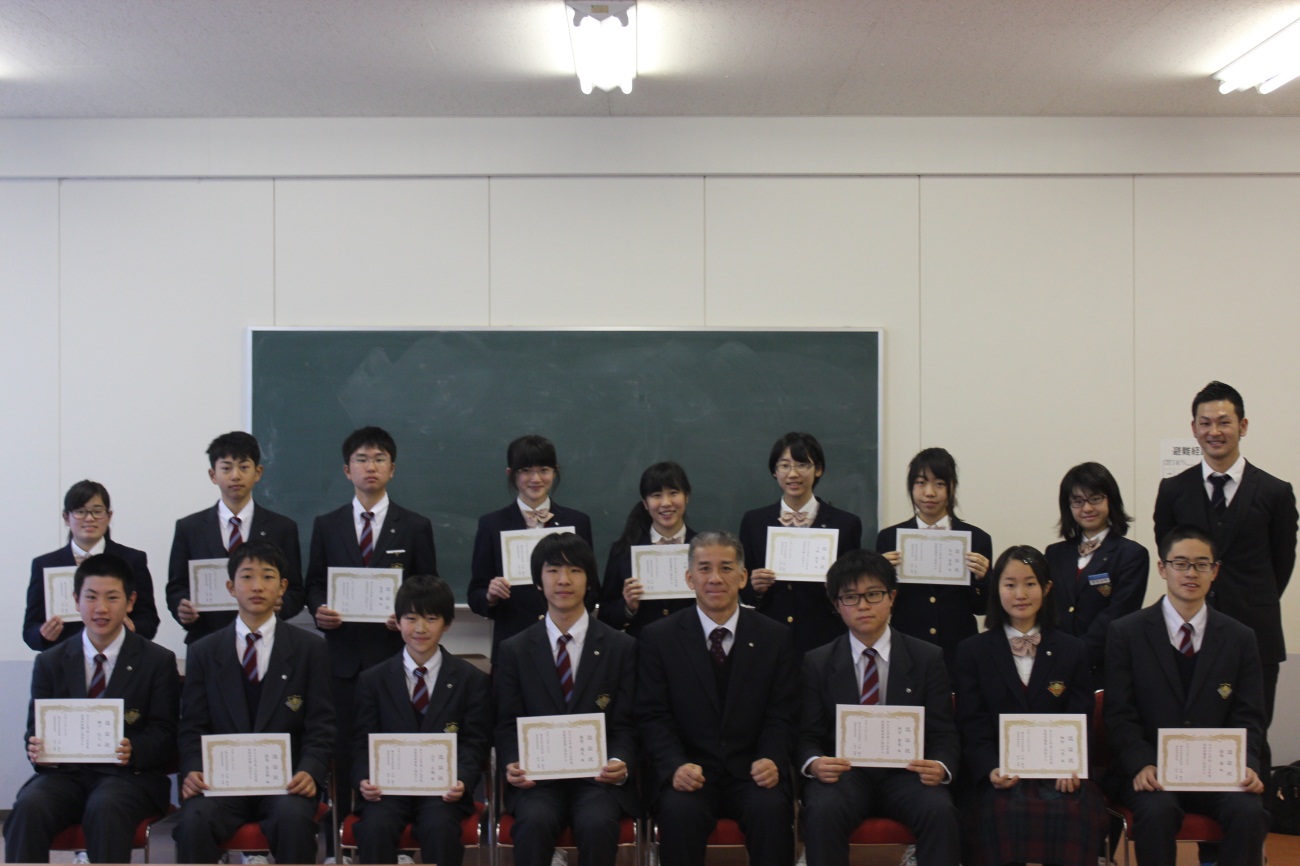先日行われた生徒会役員選挙により、平成29年度の新しい生徒会役員(14名)が決まり、2月9日(木)に認証式が行われました。新生徒会役員一人一人に、校長先生より認証状が渡されました。緊張の中にも、新たな決意と責任感に満ちたピリッとした生徒達の表情が印象的でした。校長先生から、「中学移転に向けて、様々な行事を見直す中で、生徒会にも力になってほしい。これまでの生徒会に縛られず、新たな視点で活動し、先生とも協力しながら、よりよい駿台甲府中学校を目指してほしい。」との激励の言葉をいただきました。14名は厳粛な雰囲気の中、学校を動かす期待と責任感を実感しながら、認証状の重みを受け止めた様子です。本校のさらなる発展のために、来年度の生徒会がこれまでにない活発なものになることを期待しているところです。