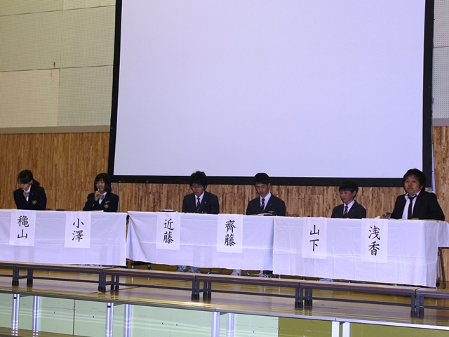 この日は、各クラスや学年で全員が発表を行った中から、他生徒の参考になるような研究発表をした代表生徒があらためて体育館で披露をし、担当教員や副校長から、感想や講評、アドバイスをされるという会が開かれました。また、駿中二期生で在学当時地震について課題研究に取り組み、筑波大・京都大大学院で研究を積み上げ、現在は三菱スペースソフトウェアで地震に関連したお仕事をされている浅香雄太さんをお招きしてのパネルトークや中3生に向けての講演会なども開かれ、大変充実した会となりました。生徒諸君は次年度に向けてさらに向上した研究をするべく、目標を持つことができたと思います。