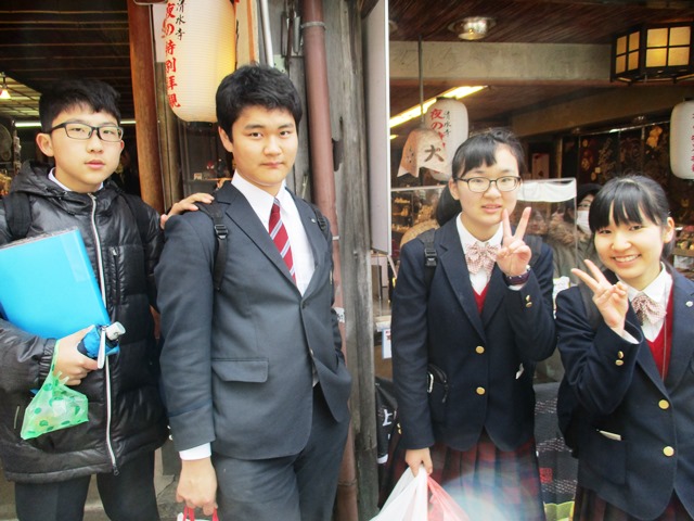3日目は、生徒が心待ちにしていた班別自主見学をしました。この日まで各班ごとに綿密に計画を立てていた行程を実践すべく、京都の町や寺社を散策したり、工房体験などをしました。途中小雨に降られたりもしましたが、トラブルにも遭わず、無事に見学を終えました。