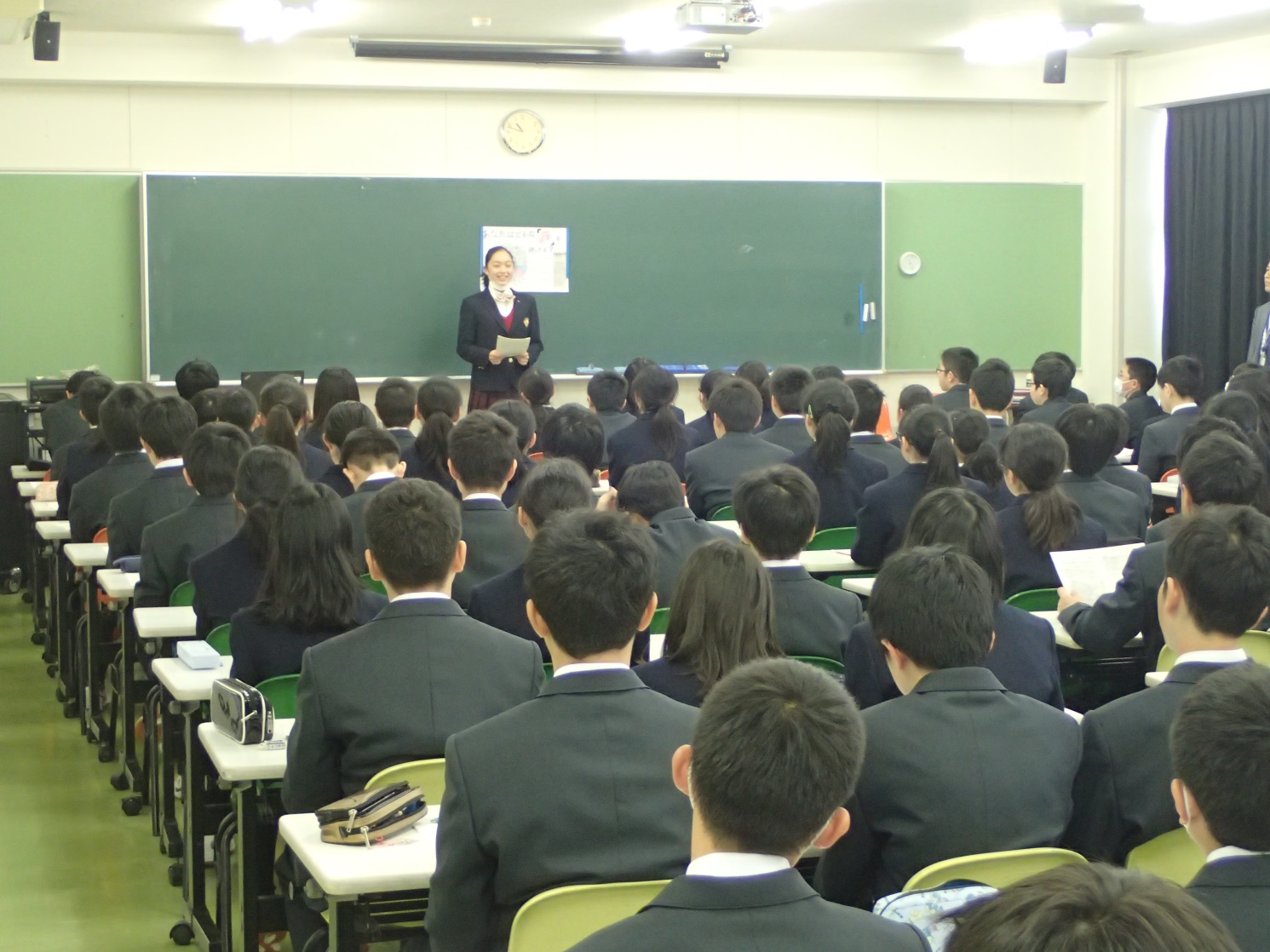 4月8日、新1年生の課題研究ガイダンスが行なわれました。最初に2年生の代表4人が、それぞれの研究成果を発表しました。1年生からアンケート調査のやり方など、いくつかの質問が出されました。その後、担当の先生から課題研究の予定や進め方の説明をうけ、ホームルーム教室にもどってテーマと計画をたて、今年度の課題研究がスタートしました。分野ごとの発表は2学期の後半に、それらの代表者が集まる学年発表は2月3日(土)に、そして3月3日(土)には全校の発表会が予定されています。