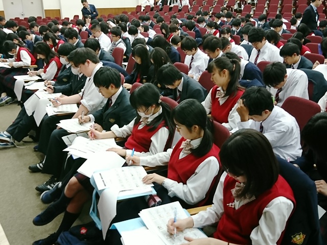 4月25日(火)3年生は、埼玉県飯能市にある駿河台大学の見学に行ってきました。午前は、大学の全体説明や大学案内DVDを視聴しました。昼食は大学内の学食を利用させていただき、各自で思い思いの食事をしました。午後は、大学生ガイドによるキャンパス見学ツアーを行いました。模擬法廷の入った講義棟やメディアセンター、トレーニングルームを兼ね備えた体育館などを見学しました。東京ドーム29個分という広大なスペースに様々な施設をもつという広さや多様な施設に驚いていました。また、心理学部准教授、永作稔先生による、体験講義「人が発達するってどういうこと?自分らしさの発達心理学」を受講しました。授業後に生徒から、「発達は小さい頃出来たことが出来なくなることもあることがよくわかった」「個性は奇抜なファッションの人とかでなく、興味、好き嫌いも個性の一つの要素なのか」「個性は人だけでなく環境との相互作用だということがわかった」「このごろ将来について不安に思っていたが、少し心が晴れた気がした」など、様々な感想が出されました。多感な時期にさしかかった中学3年生にとって貴重な講義となり、大いに刺激を受けていました。