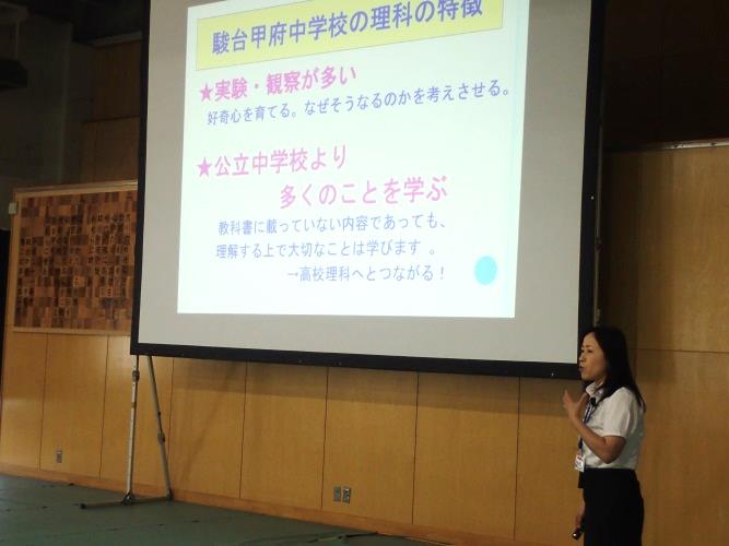 なお、7月30日(日)には、小学6年生を対象にした1日体験入学(要・申し込み)が行われます。当日は、多くの駿中在校生もお手伝いに加わり、授業体験やクラブ体験が行われます。引き続き、多くの小学6年生の皆さんのご参加をお待ちしております。