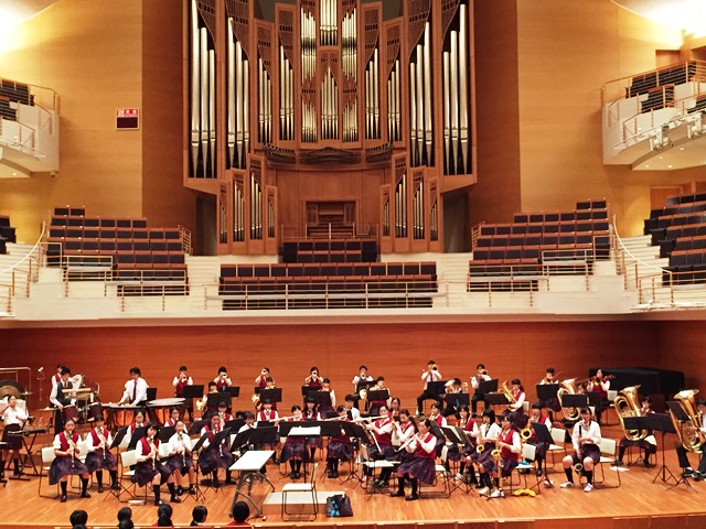 前日のホール練習では出場生徒以外の補助員生徒も楽器搬入、搬出をいかにスムーズにできるか何度も練習して本番に臨みました。吹奏楽部61名が一丸となって臨んだこの大会では、銅賞という結果となりました。残念な結果と気落ちする生徒もいると思いますが、他県の吹奏楽部のさらにレベルの高い演奏を聴き、会場内外での立派な振る舞いは大変勉強になり、なにより、審査員も大いに評価した、難解な曲にチャレンジして練習を重ねた日々は何物にもかえがたいものです。