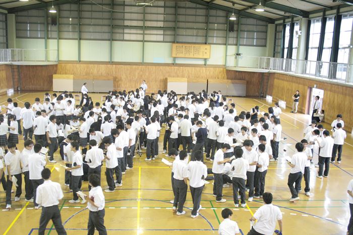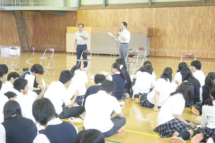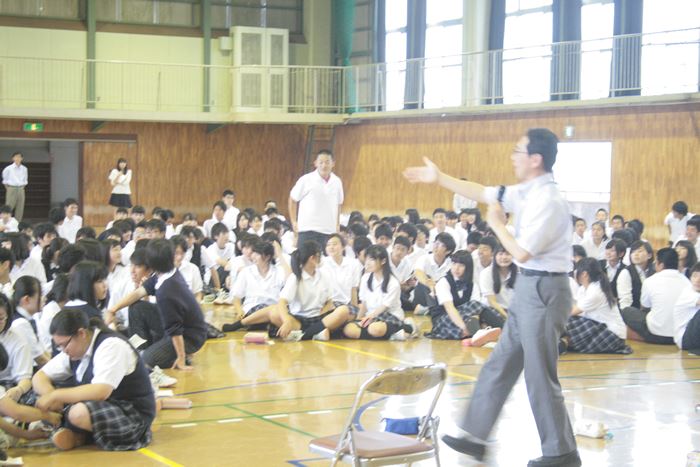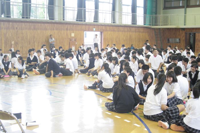 6月16日(火)に、本校のスクールカウンセラーである川辺修作先生による1年生対象の講演会が行われました。これは、コミュニケーション能力の向上を目的としており、対人ゲームで体育館内を動き回ってさまざまな人と会話をする実戦中心の内容でした。生徒からは、「相手がどんな人か推測するのが楽しかった。」,「普段は交流の少ない他クラスの人とも仲良くなれた。」などの意見が聞かれました。全体を通してとても和やかな雰囲気で実施することができました。