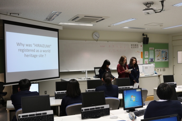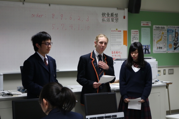ホーム ニュース - 英語の授業にて 英語の授業にて 2017年12月16日 12月16日(土)、ニュージーランドからの短期留学生David君とAnneさんの入っている1年H組の英語Rの授業で、日本にある世界遺産についての英語でのプレゼンテーション大会を行いました。David君もAnneさんも班に入っての発表、生徒達はプレゼンの難しさを感じながらも英語で表現、説明することの大切さを学びました。 入学案内 学校説明会・体験授業 募集要項 お問い合わせ よくある質問 PageTOP